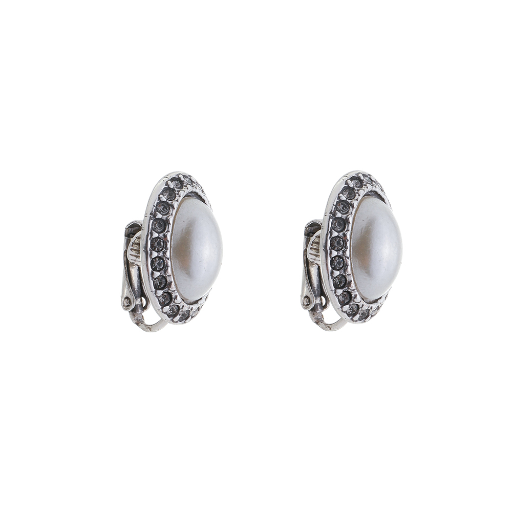 Brinco Oval Pérola Pressão Básica Prata