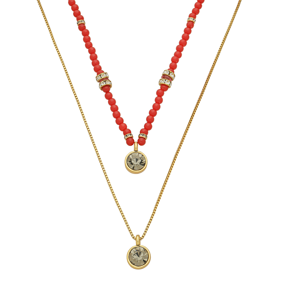 Colar Duplo Contas Vermelho Resort Ouro